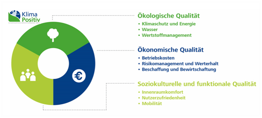 Zukunftstrend vom Plusenergie hin zum Klimapositiven Gebäude. Der gemessene Energieverbrauch (Strom, Wärme, Warmwasser) wird dabei den vermiedenen Emissionen gegenübergestellt und